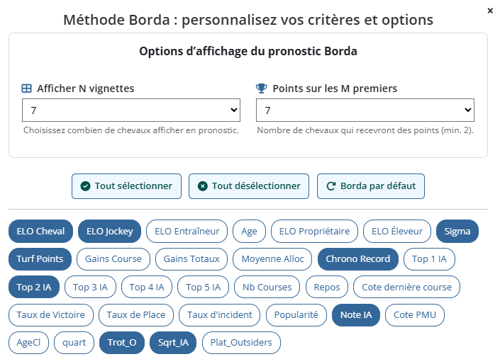 MathBZH (l’éditeur de formules stratégiques) et la méthode Borda se sont imposés parmi les fonctionnalités les plus appréciées, pour affiner vos pronostics selon vos propres critères.