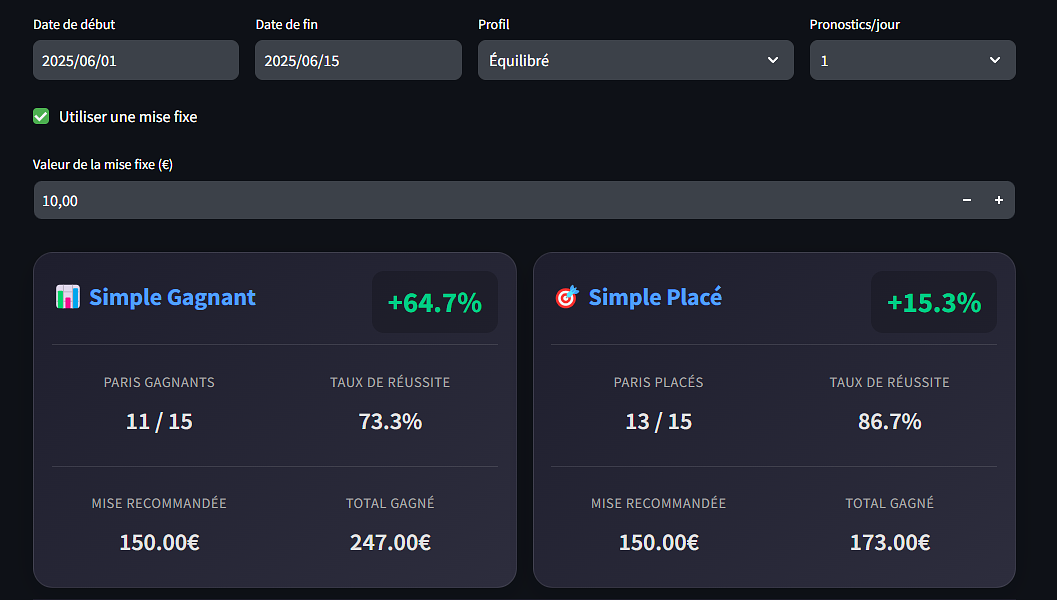 Un nouveau modèle d’IA : il vous proposera automatiquement les meilleures combinaisons de formules selon le type de course. Gagnez du temps, restez maître de vos choix !